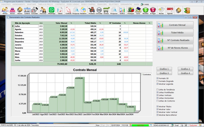 para Academia com Agendamento, Contrato, Financeiro e Vendas v6.0 Plus WhatsApp