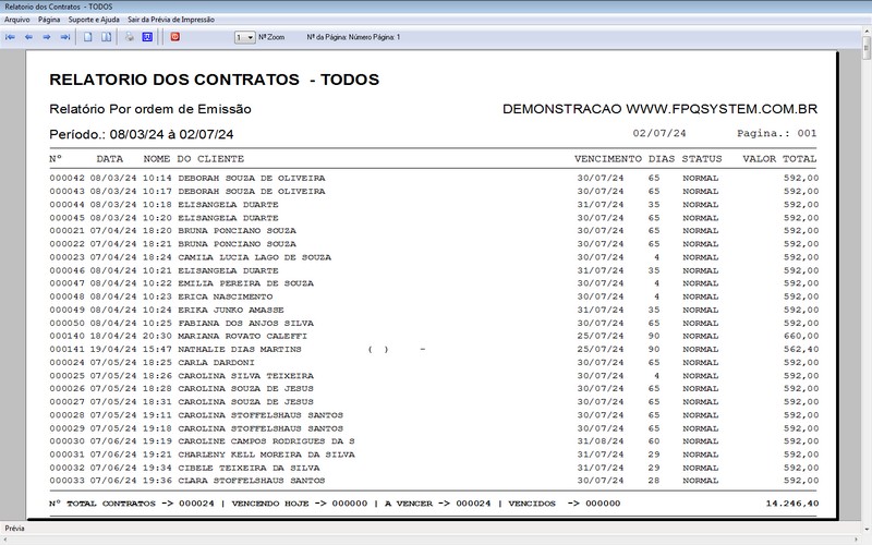 Lembrete Financeiro / Lembrete de Contratos / Relatório dos Contratos