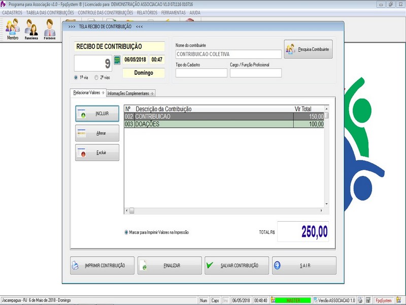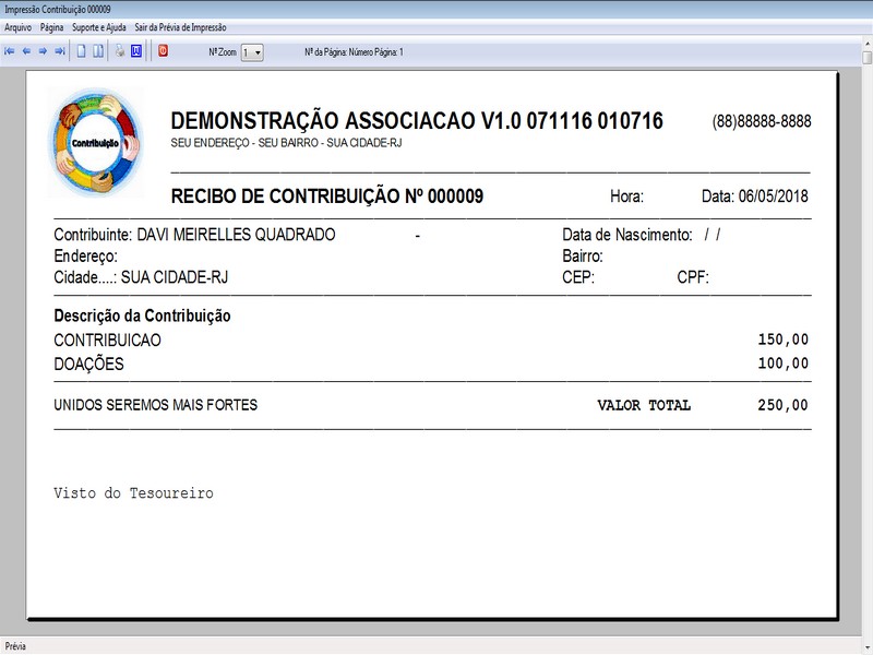 na impressão no Recibo de Contribuição