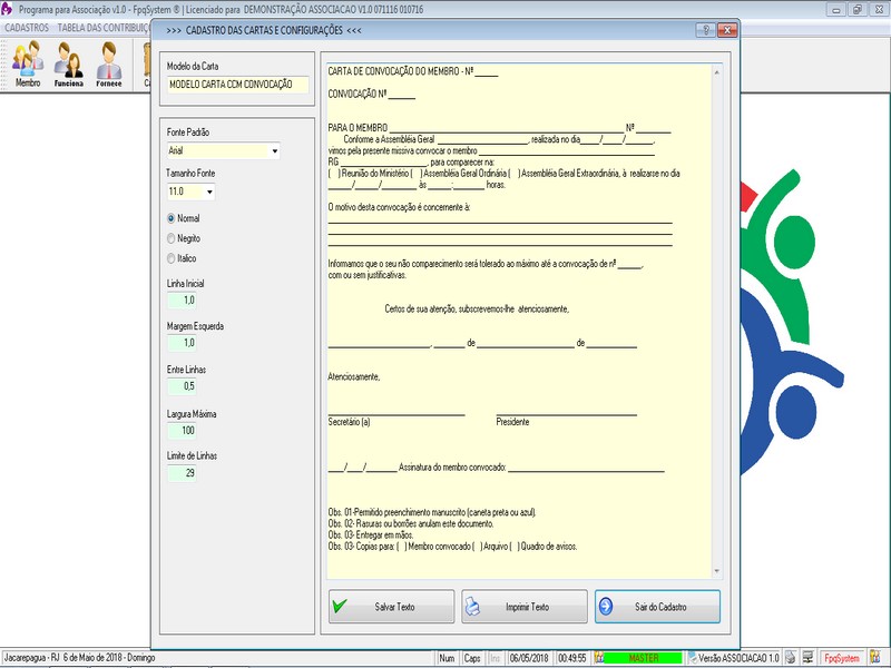 de Cartas / Impressão de Carta / Recibo de Pagamento