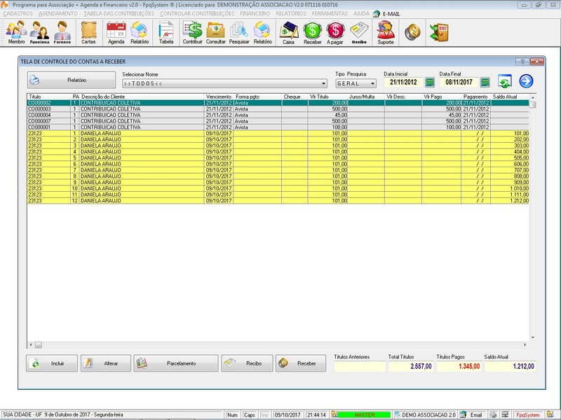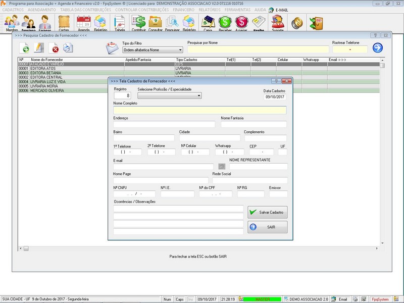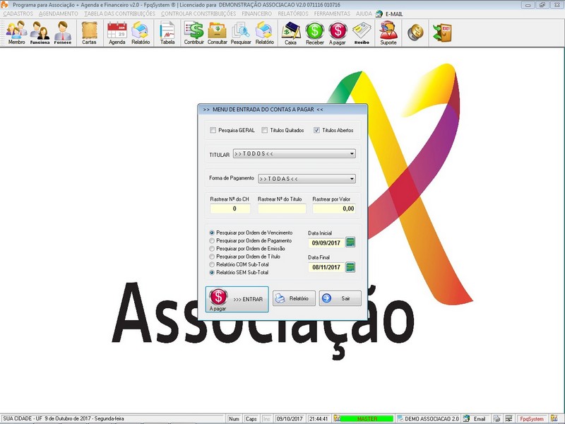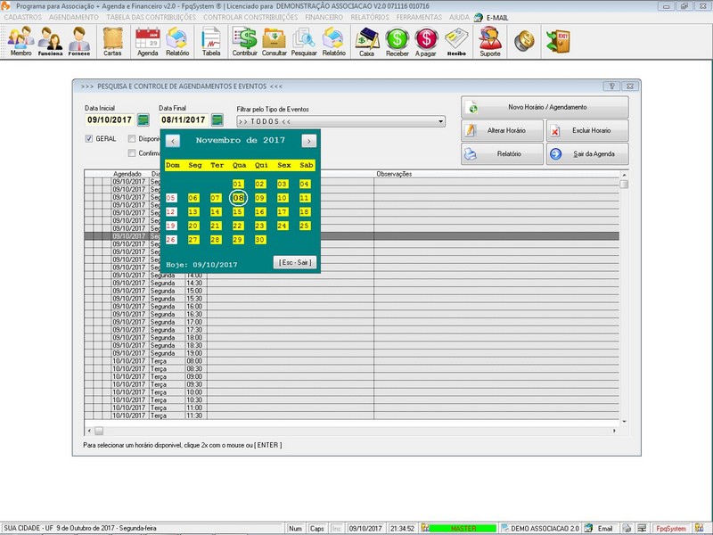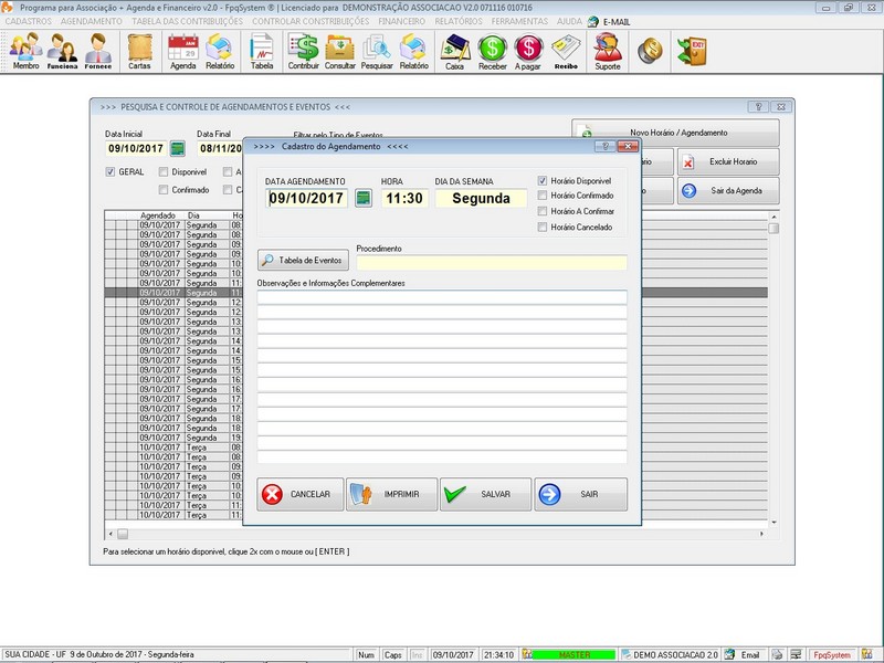 para Gerenciar Associação, Agendamento e Financeiro v2.0