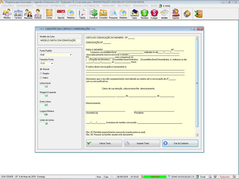 de Cartas / Impressão de Carta / Contas a Receber / Contas a Pagar /