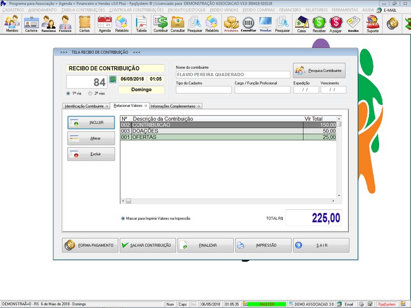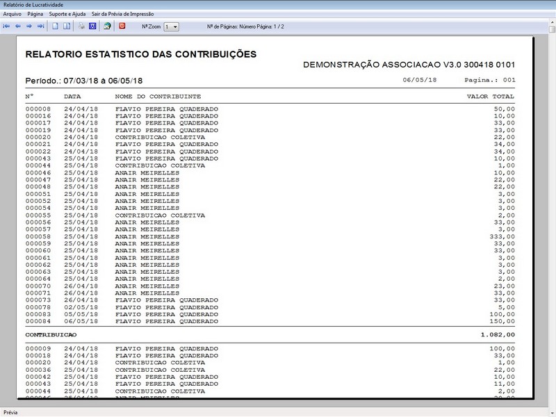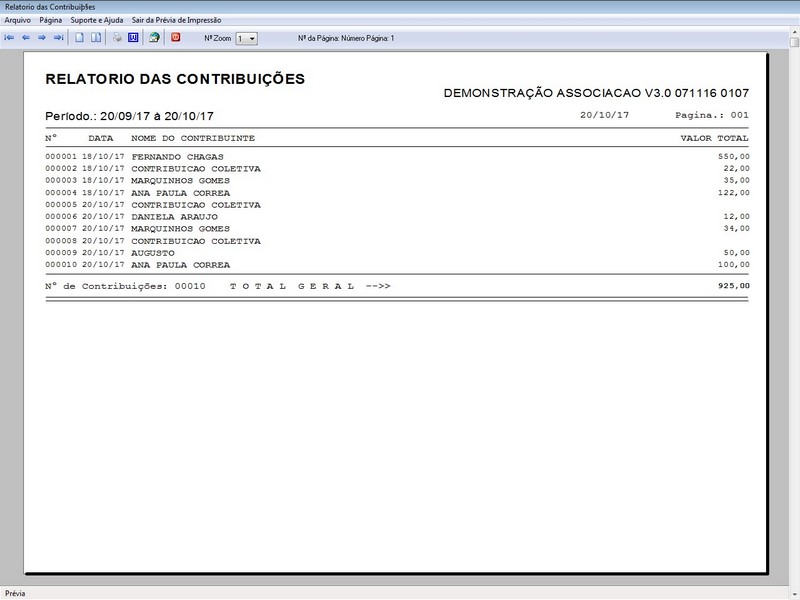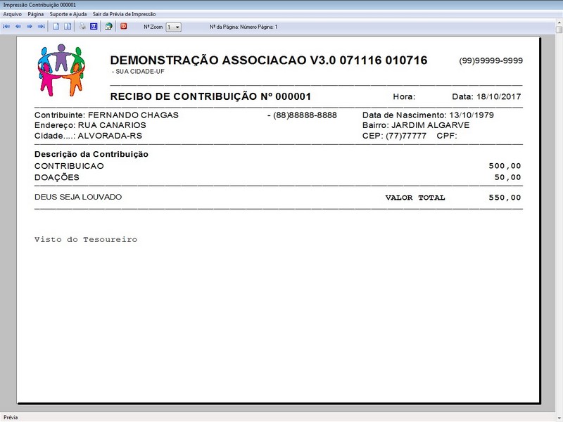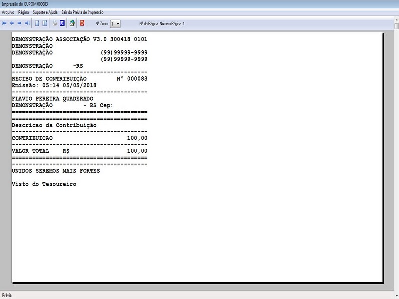 na impressão no Recibo de Contribuição