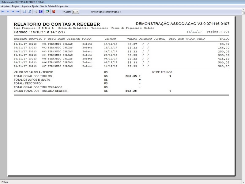 de Cartas / Impressão de Carta / Contas a Receber / Contas a Pagar /