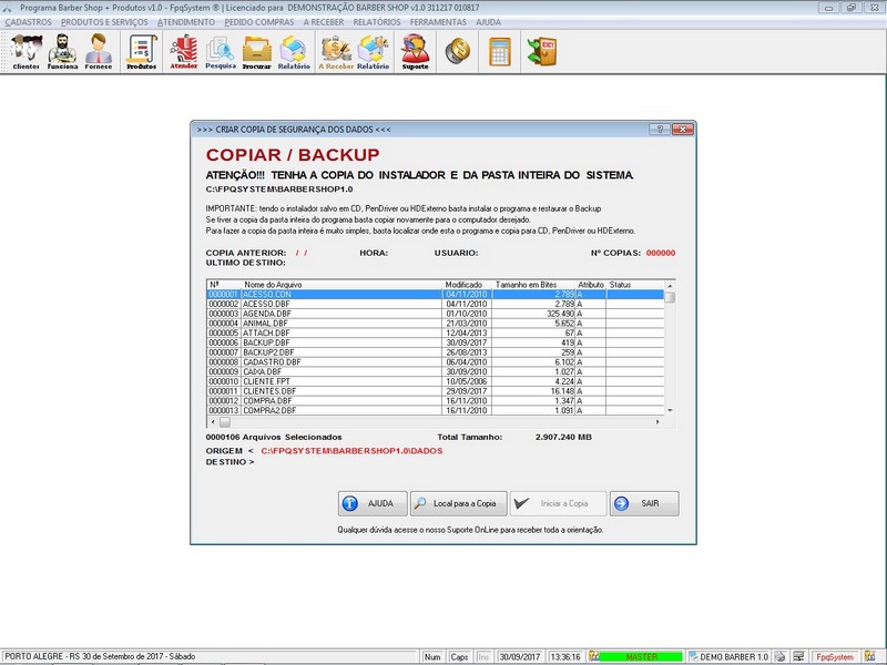 - Opção de Backup do Programa