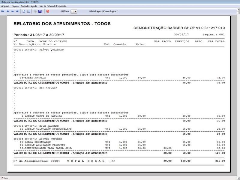 na impressão do Atendimento