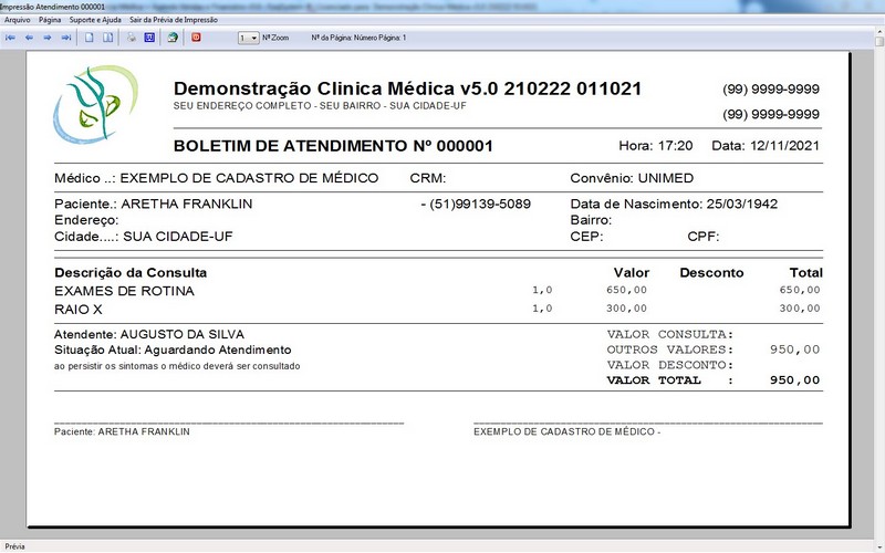 na impressão do Atendimento