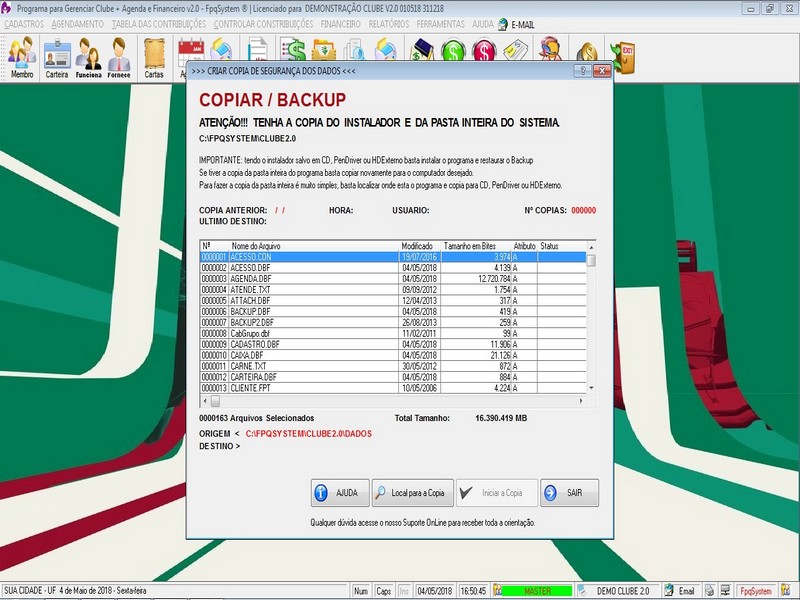 - Opção de Backup do Programa