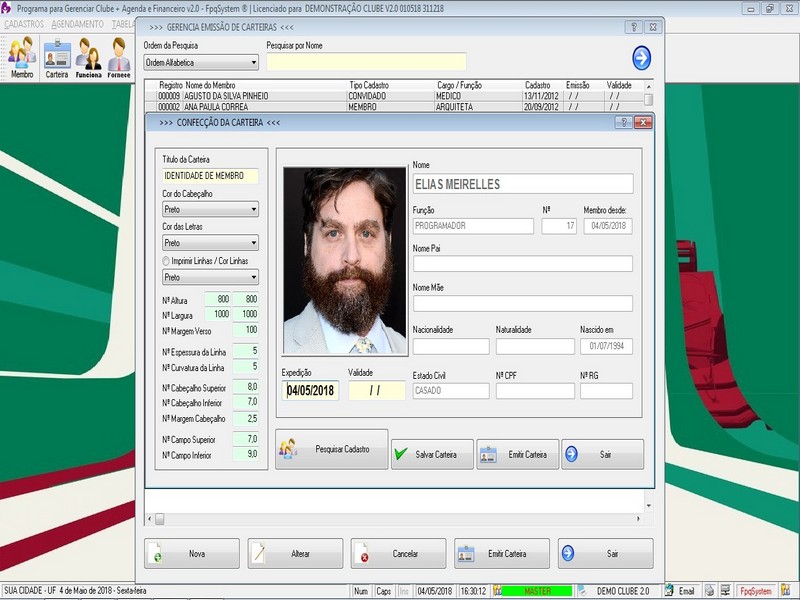 Cadastro de Carteirinhas e Emissão / Funcionários / Fornecedores
