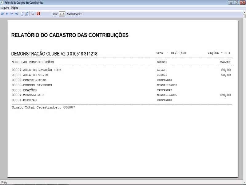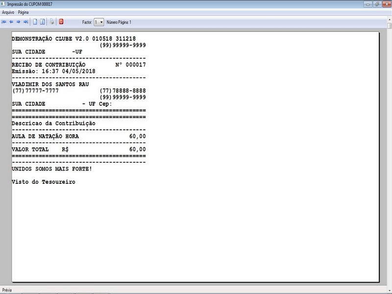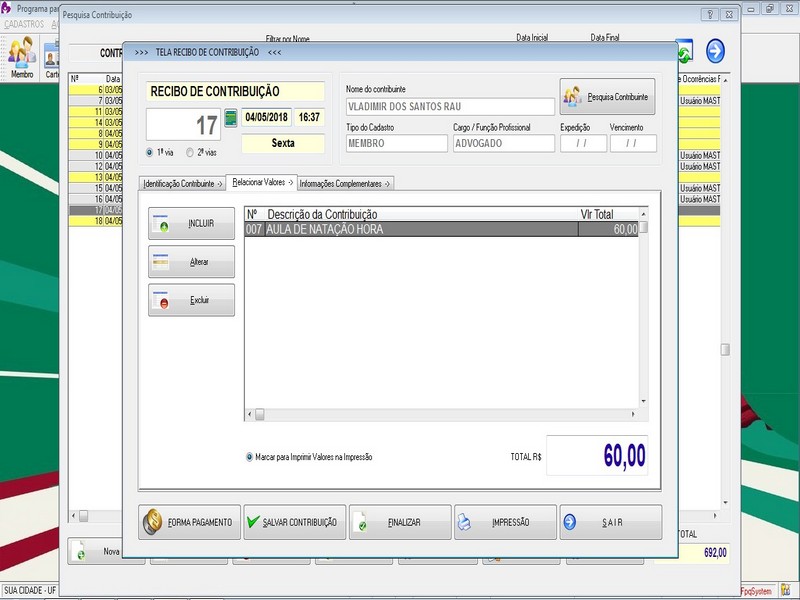 na impressão no Recibo de Contribuição