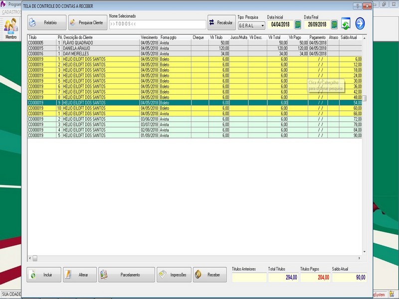 de Cartas / Impressão de Carta / Contas a Receber / Contas a Pagar /
