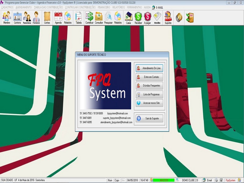 - Suporte e Atendimento OnLine via site ou menu ajuda do programa