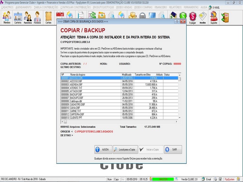 - Opção de Backup do Programa