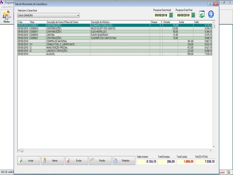 Fluxo de Caixa / Recibo de Pagamento / Acesso por Nivel de Usuario