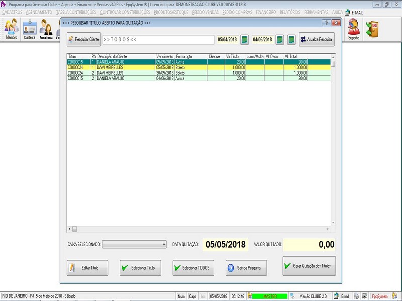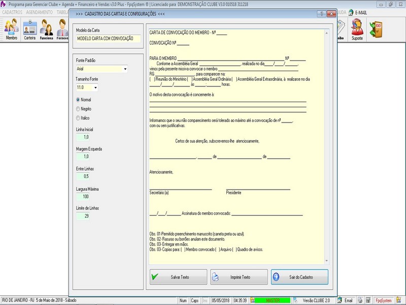 de Cartas / Impressão de Carta / Contas a Receber / Contas a Pagar /