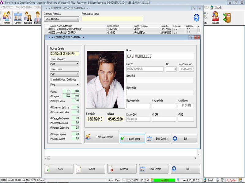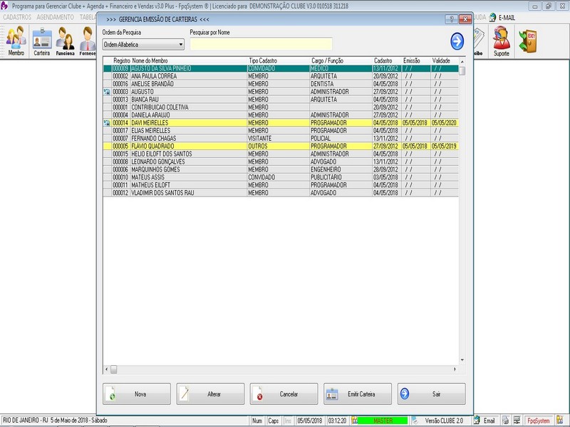 Cadastro de Carteirinhas e Emissão / Funcionários / Fornecedores