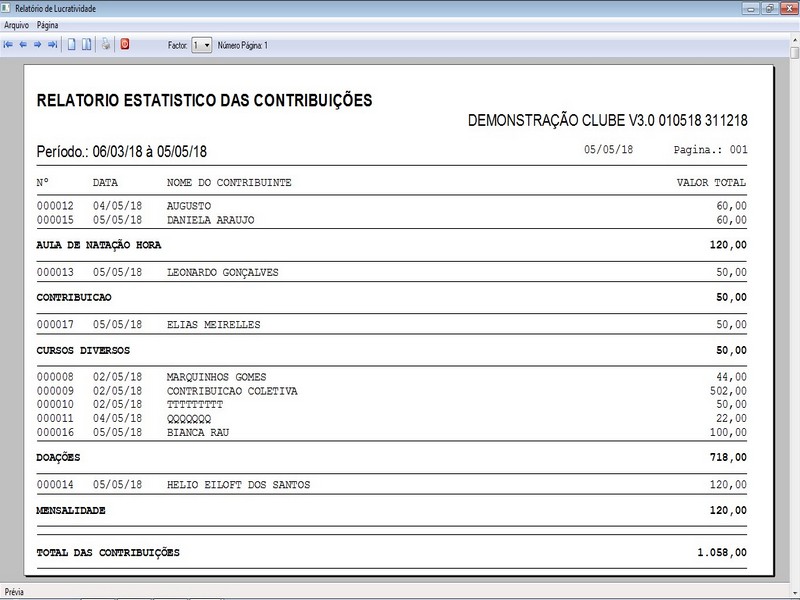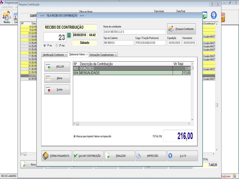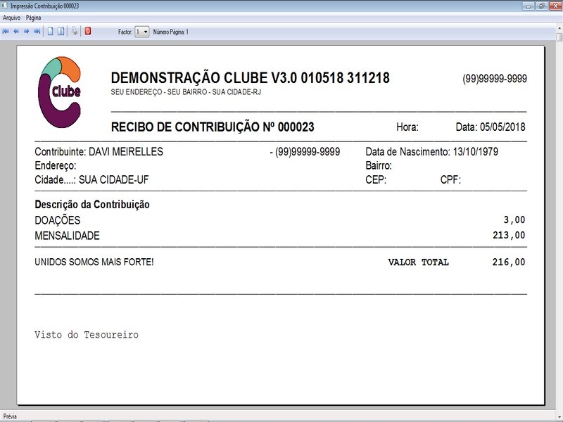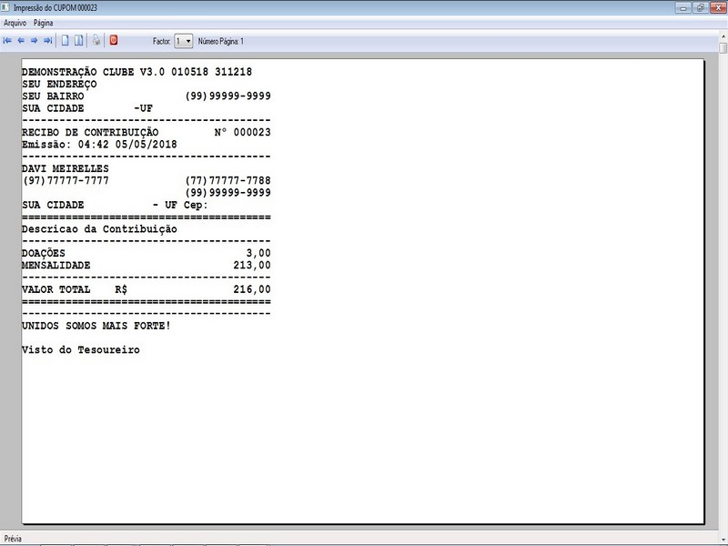 na impressão no Recibo de Contribuição