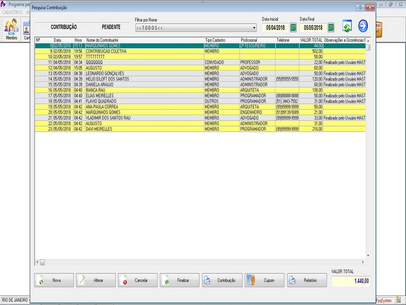 / Controle Contribuição / Relatório de Contribuições / Agendamento /