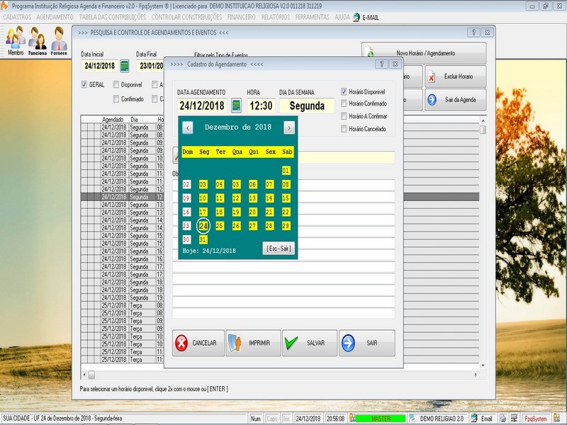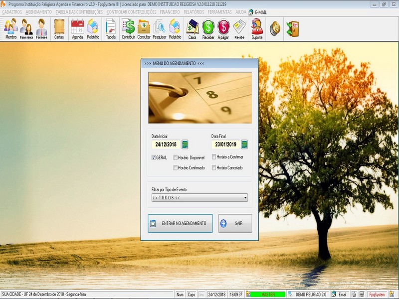 Pagar / Controle de Agendas / Cadastro de Eventos / Relatório dos