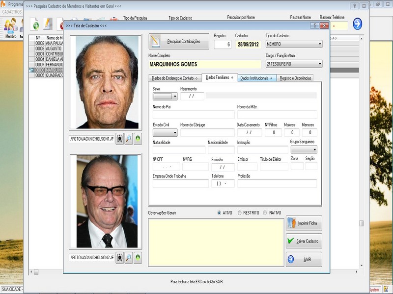 Contribuições / Controle de Caixa / Contas a Receber / Contas a