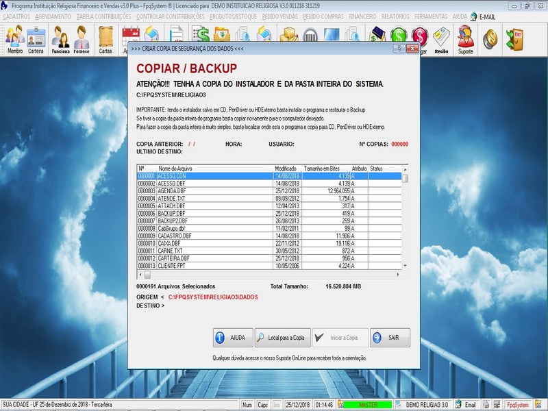 - Opção de Backup do Programa
