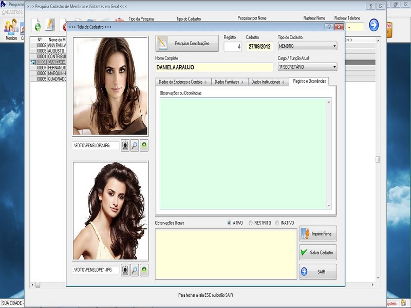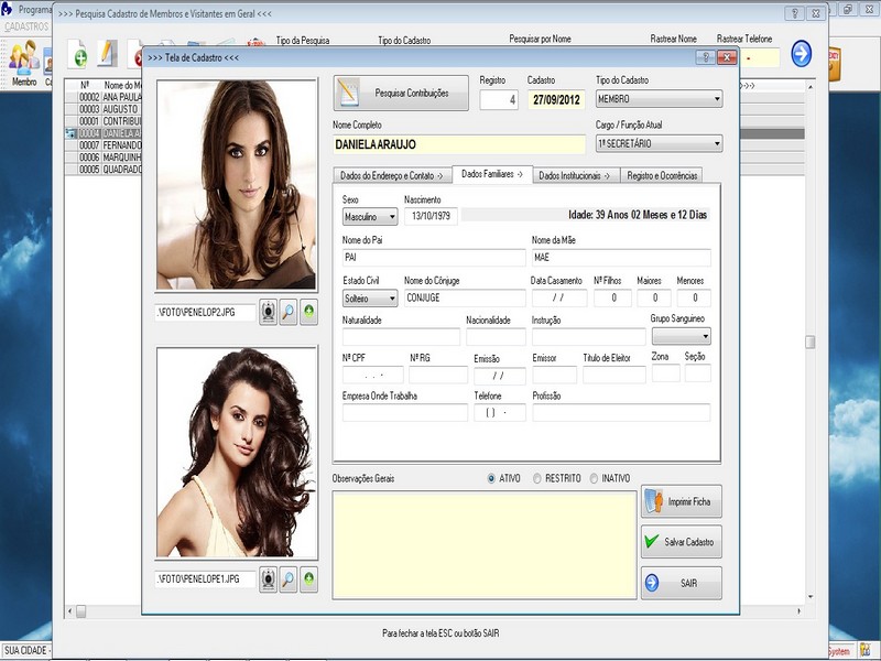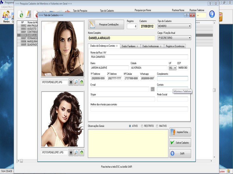 Cadastro de Contribuinte / Membros /