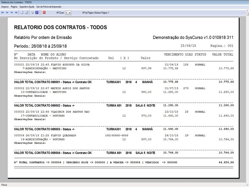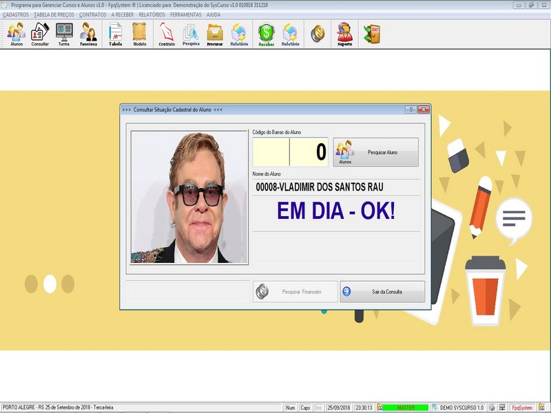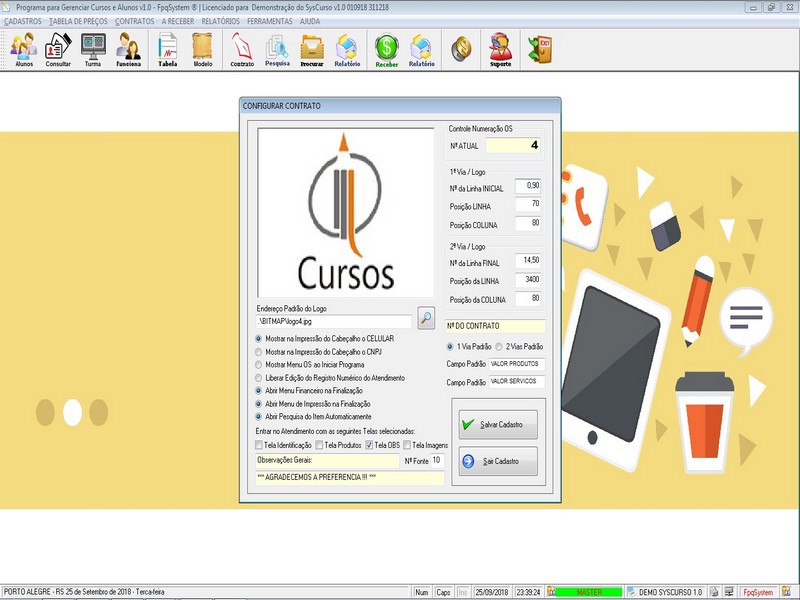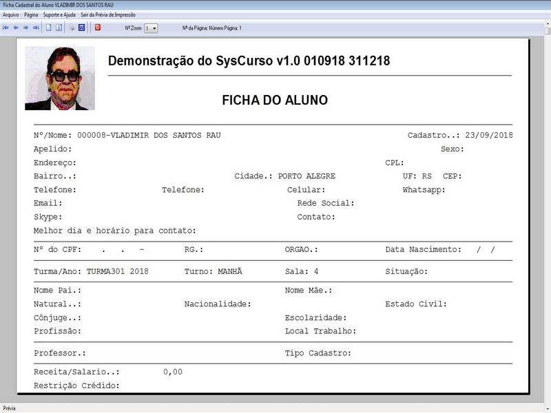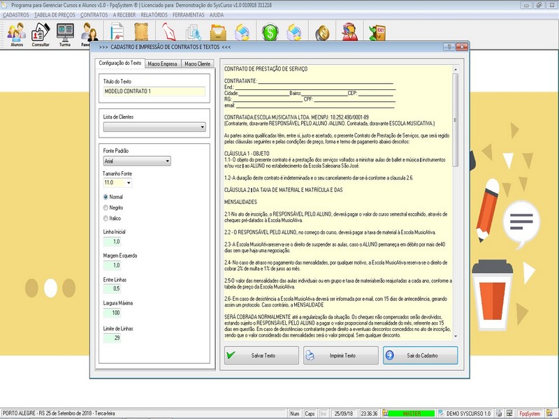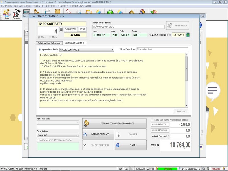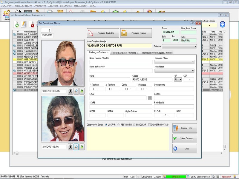 Contratos / Cadastro de Alunos com foto / Cadastro de Turmas /