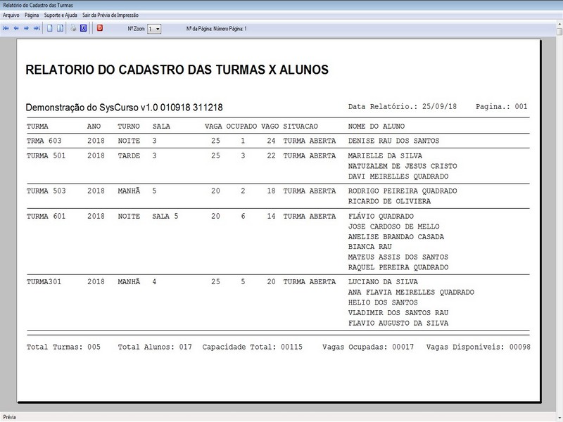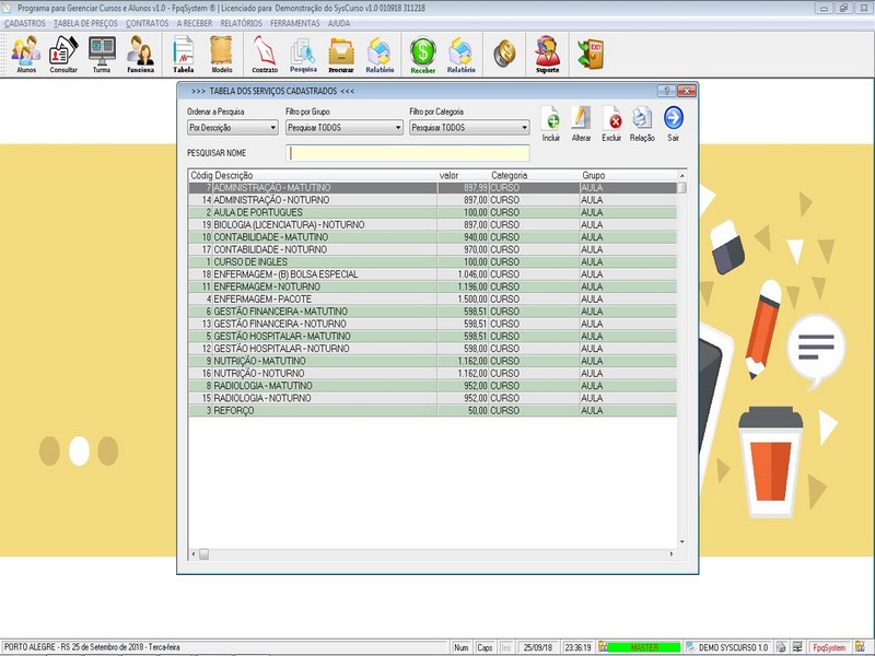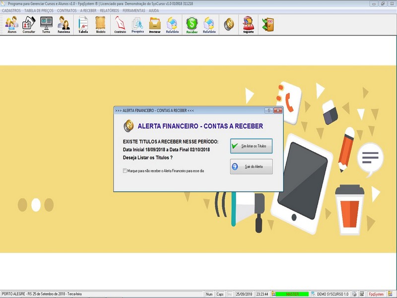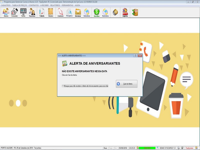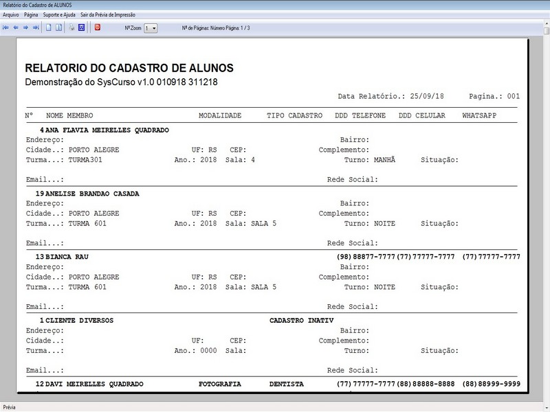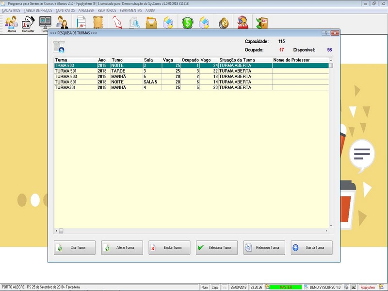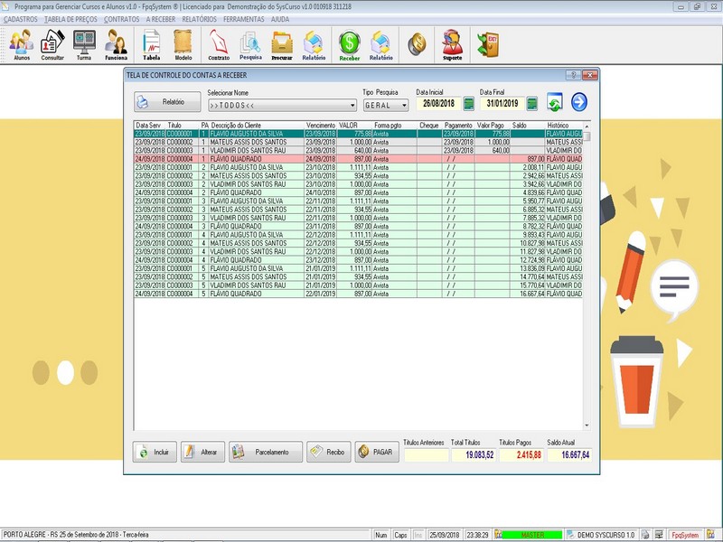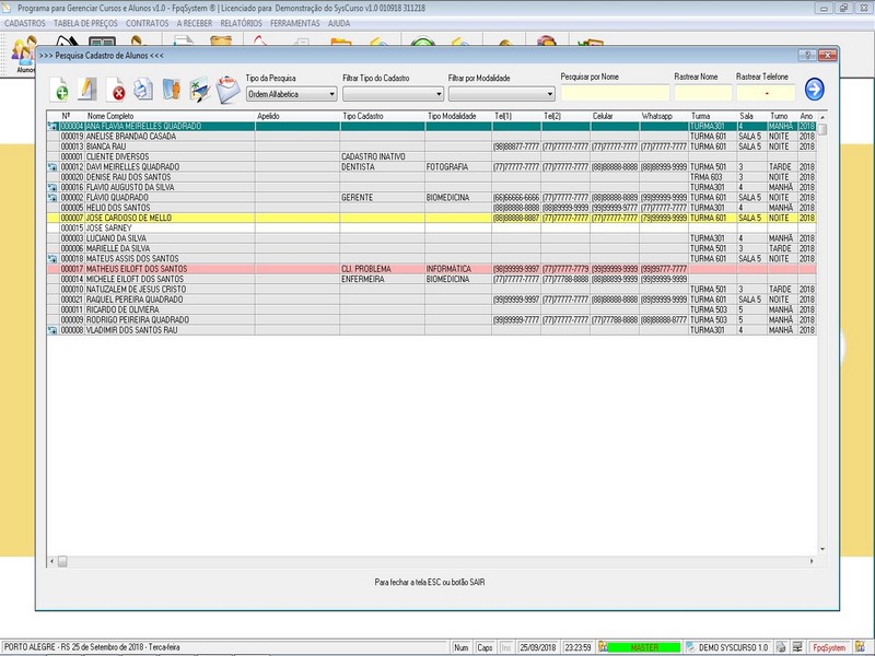 Contratos / Cadastro de Alunos com foto / Cadastro de Turmas /