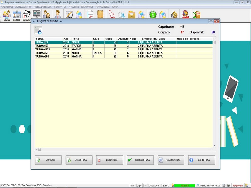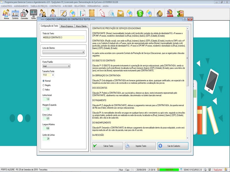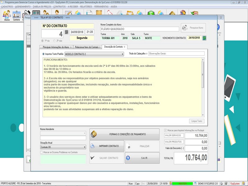 Contratos / Cadastro de Alunos com foto / Cadastro de Turmas /