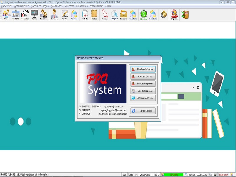 - Suporte e Atendimento OnLine via site ou menu ajuda do programa