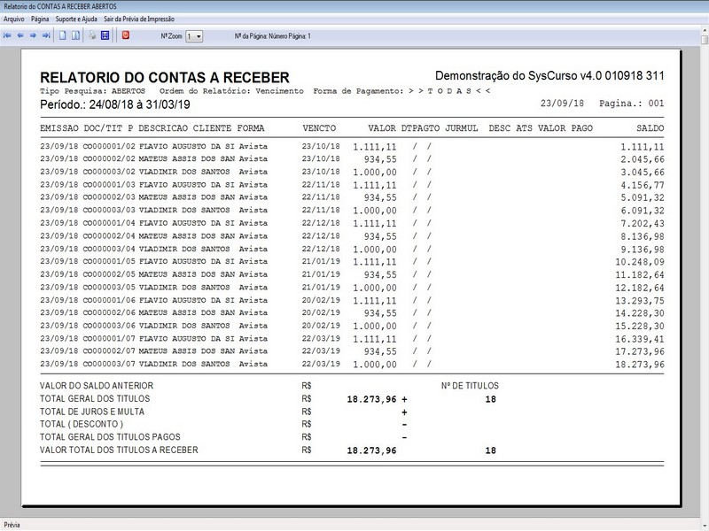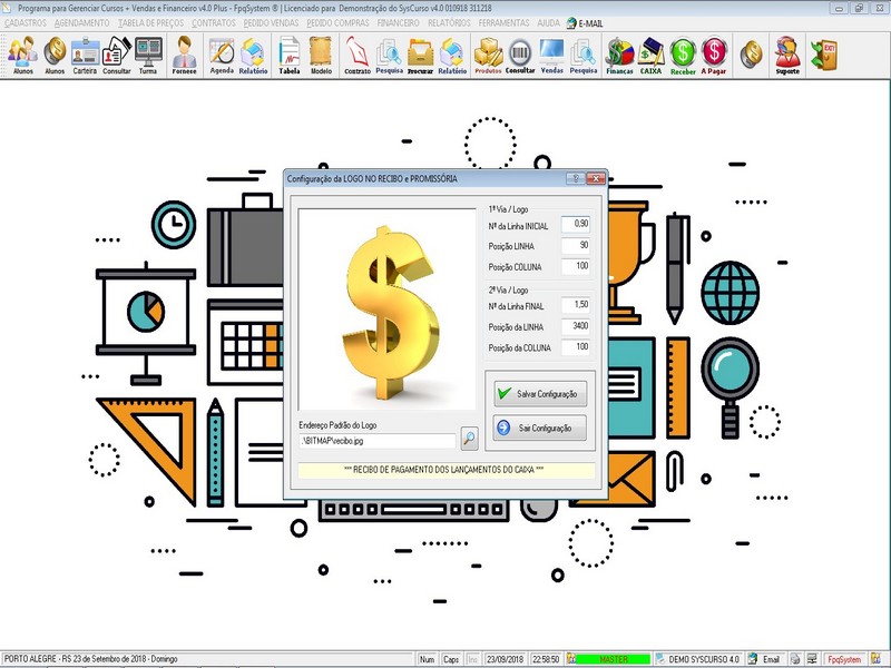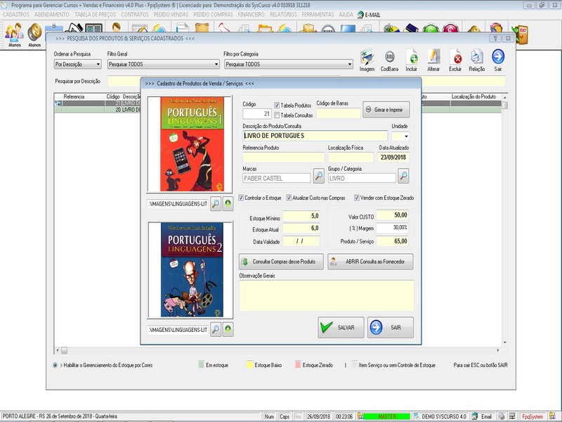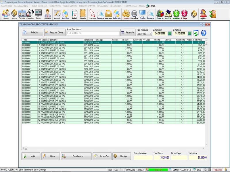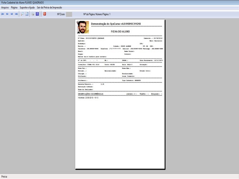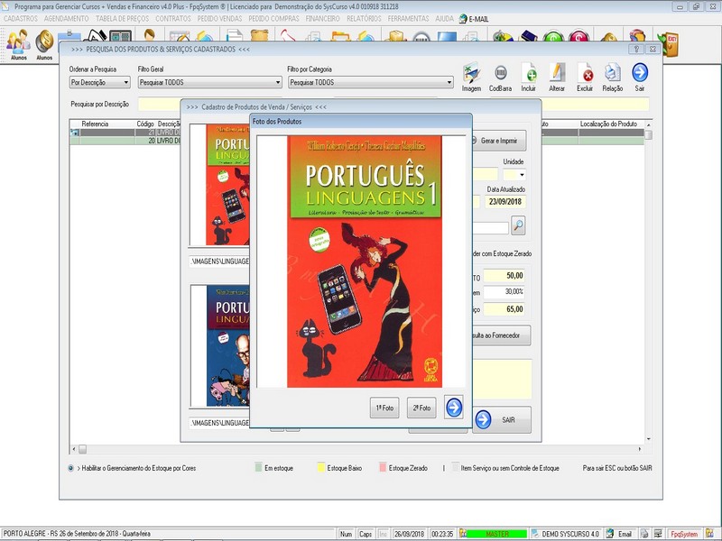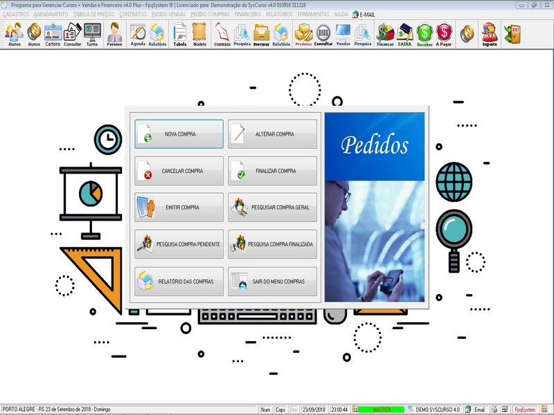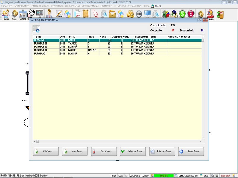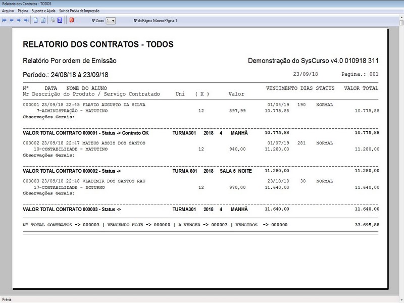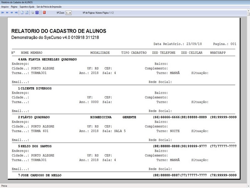 Contratos / Cadastro de Alunos com foto / Professores / Cadastro de Turmas / Agendamento / Aniversariantes /