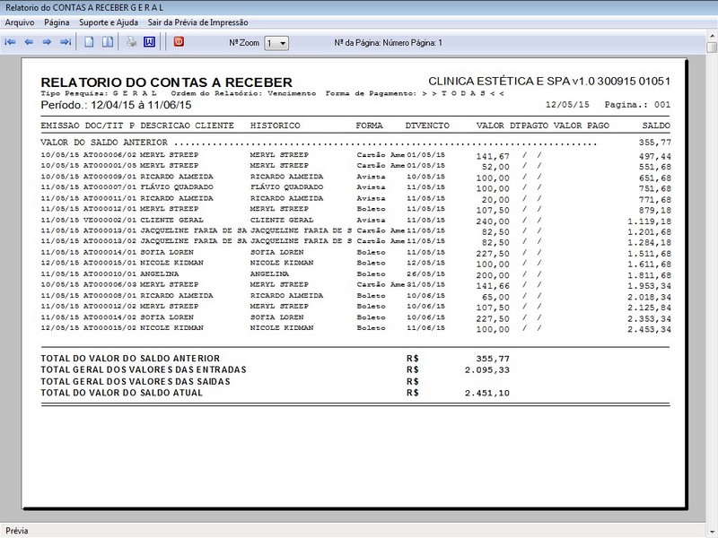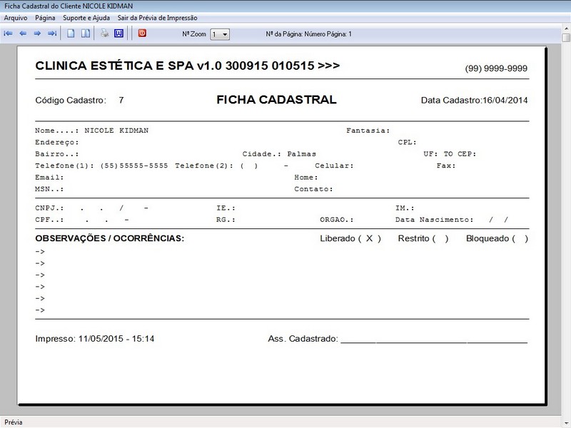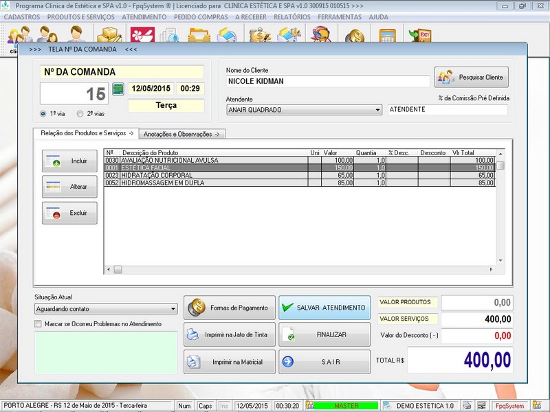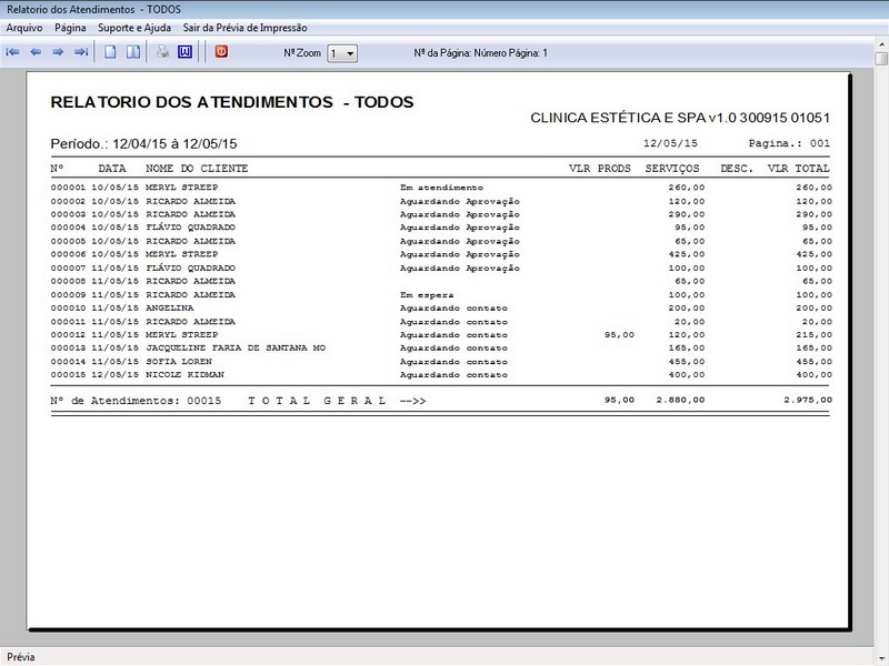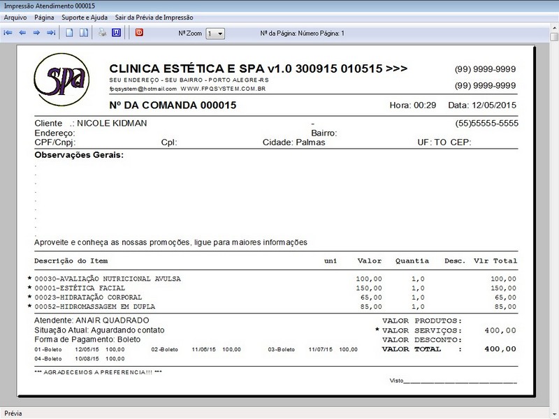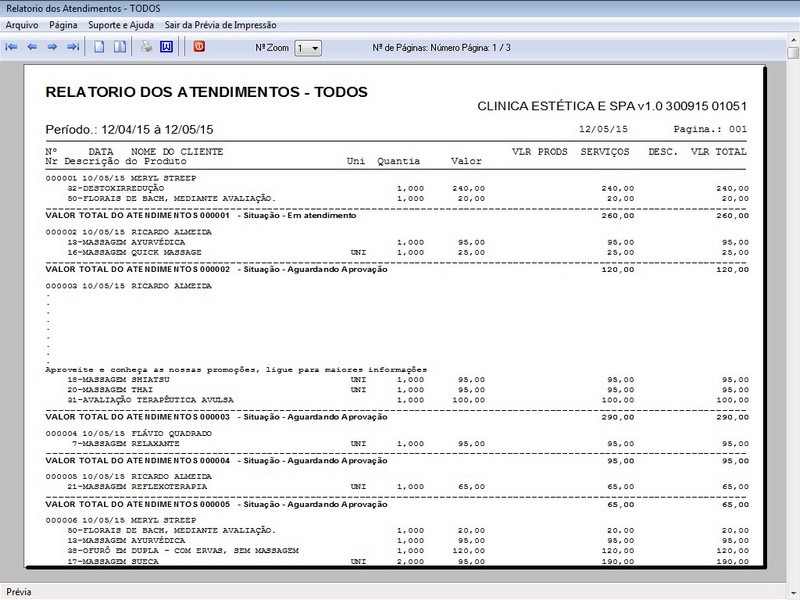 na impressão do Atendimento