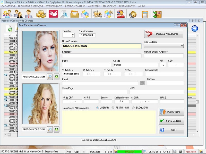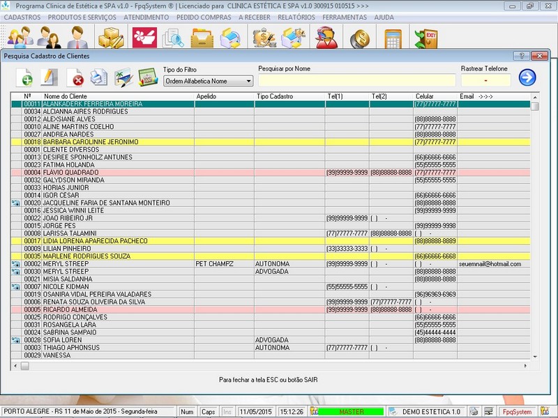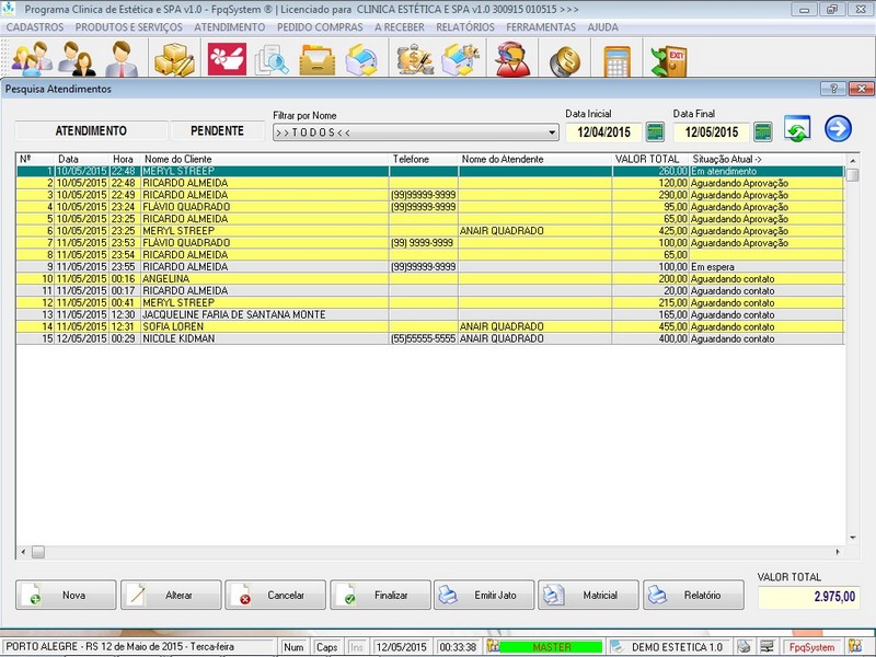 / Cadastro Clientes / Cadastro Fornecedores / Atendentes / Relatório