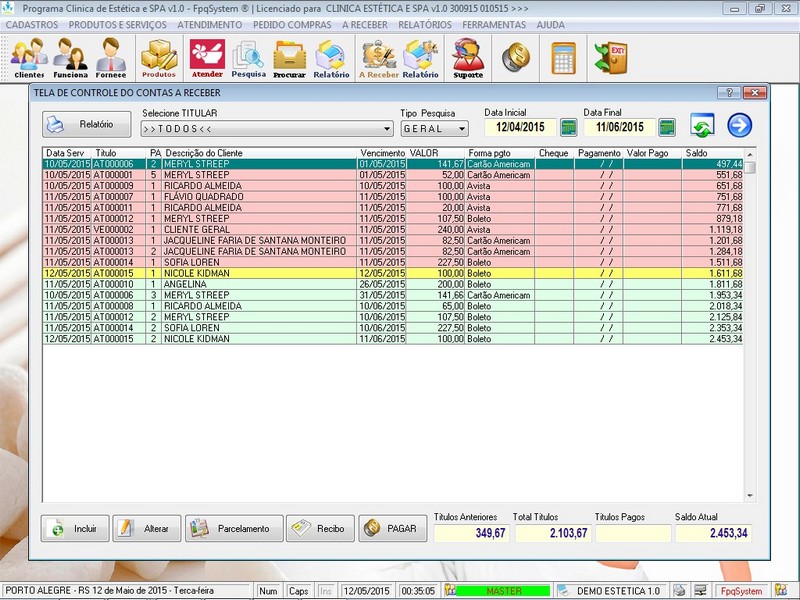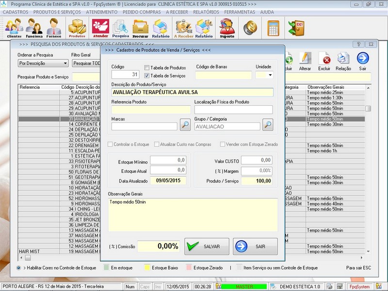 dos Atendimentos / Relatório de Comissão / Cadastro de Produtos /