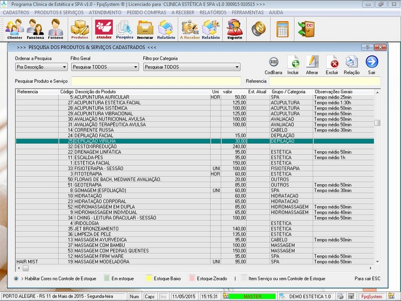 Controle de Estoque / % Comissão dos Serviços / Recibo de Pagamento /