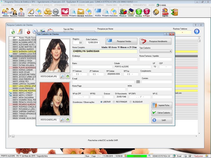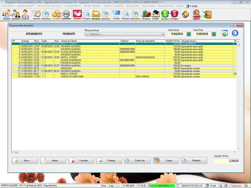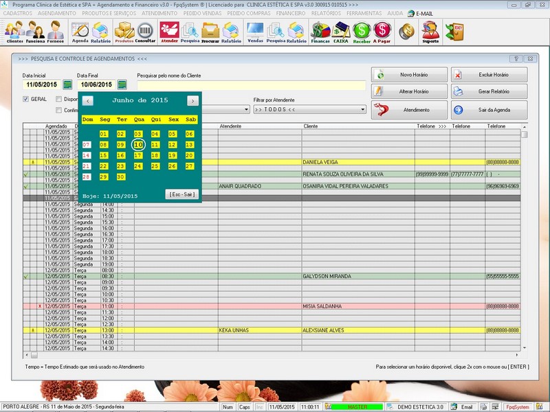 Atendimento / Clientes / Fornecedores / Atendentes / Agendamento /