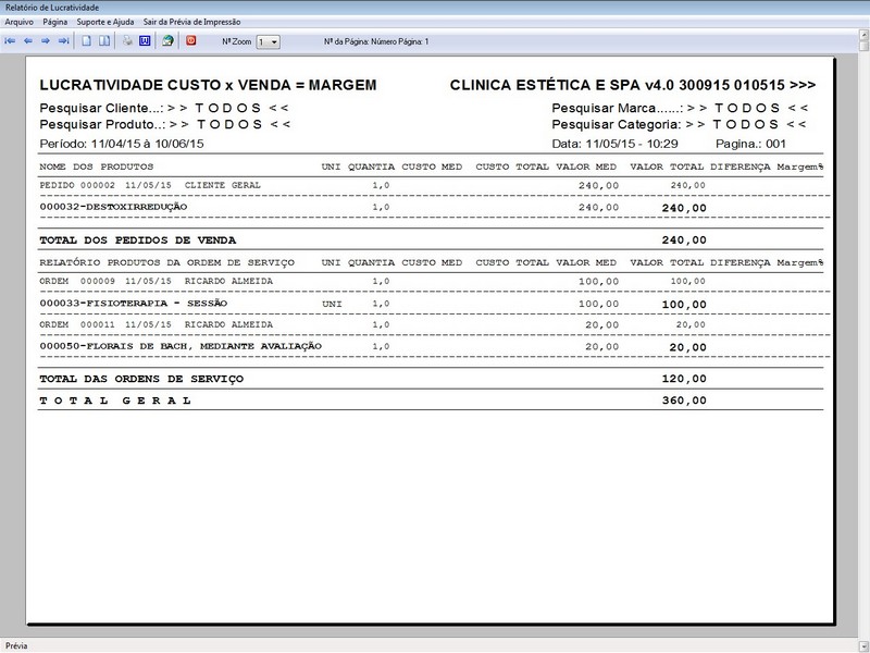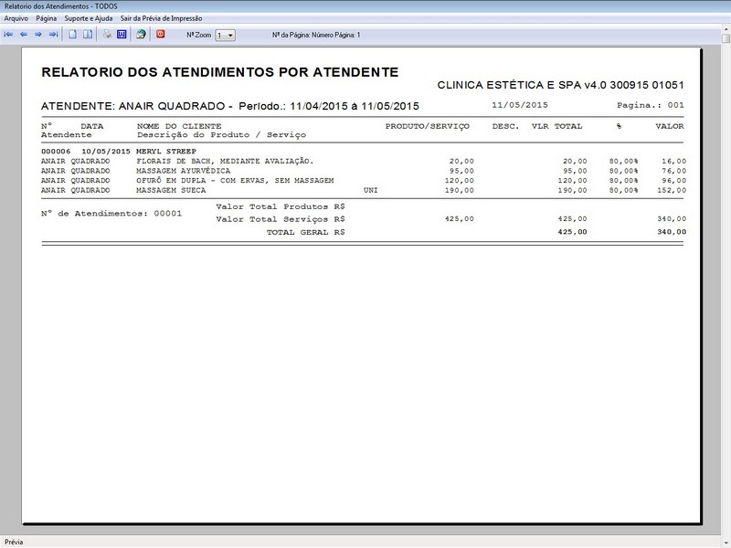 / Relatório dos Atendimentos / Relatório das Comissões / Vendas