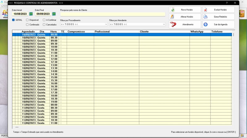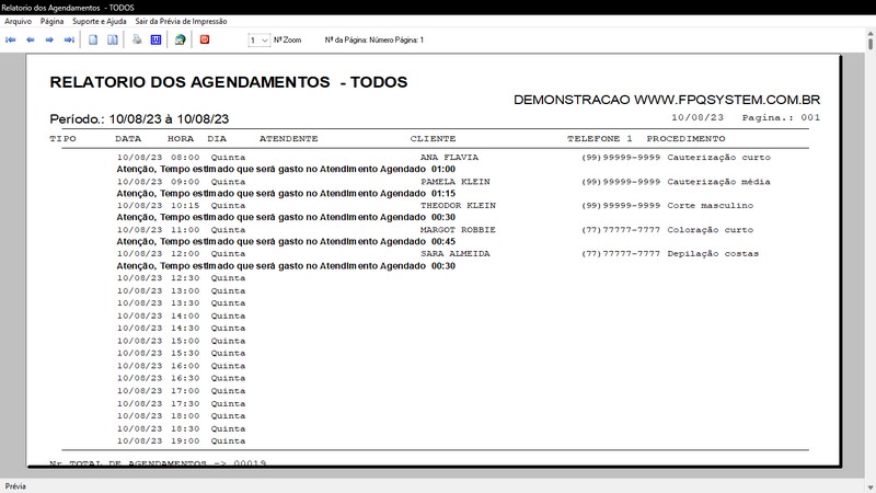Fornecedores / Atendentes / Agendamento / Relatório de Agendamentos