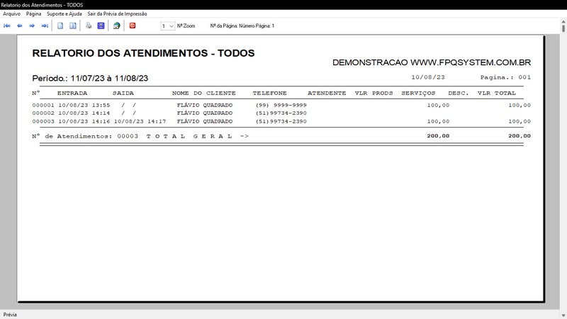 / Relatório dos Atendimentos / Relatório das Comissões / Vendas