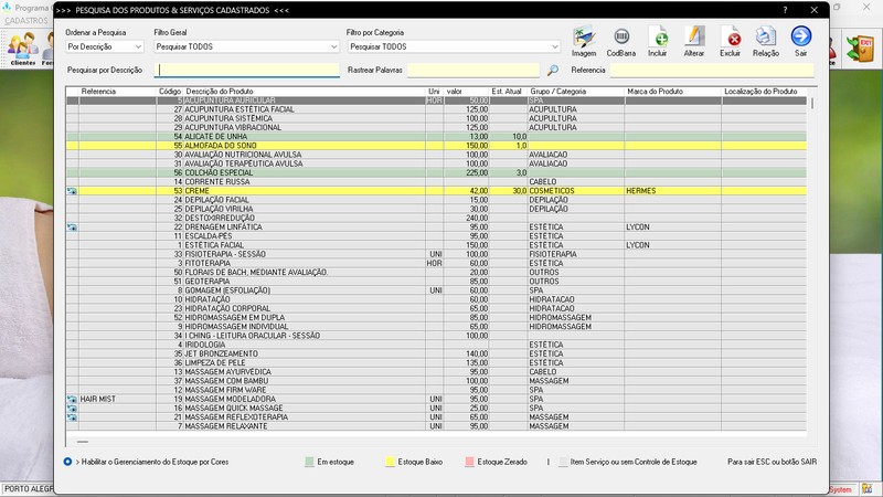 / % Comissão dos Serviços / Controle de Estoque / Acesso por Nivel