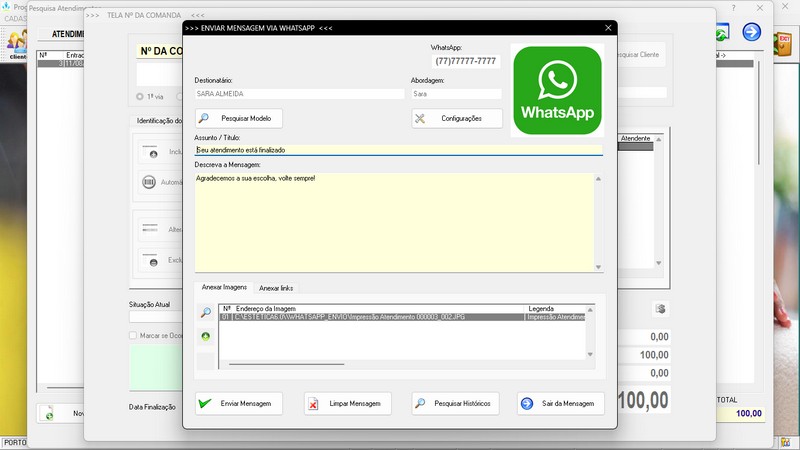 Mensagem via WhatsApp + Enviar Atendimento via WhatsApp