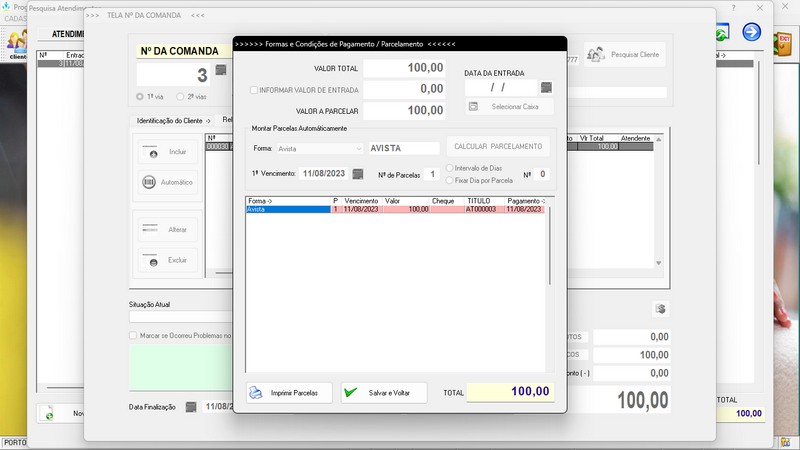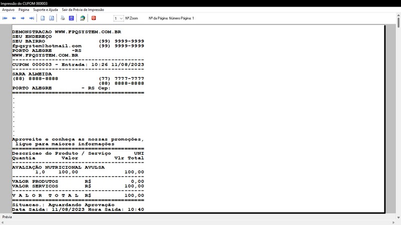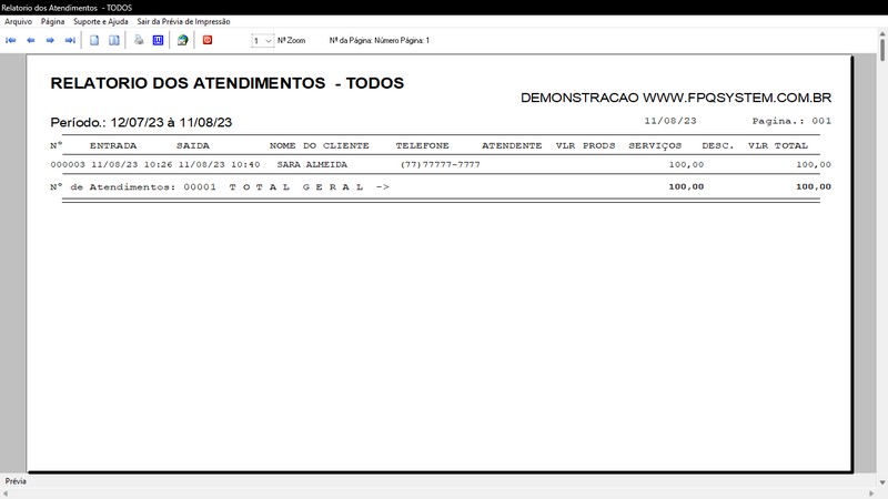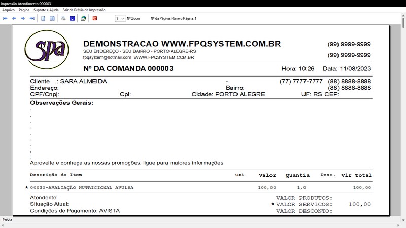 na impressão do Atendimento