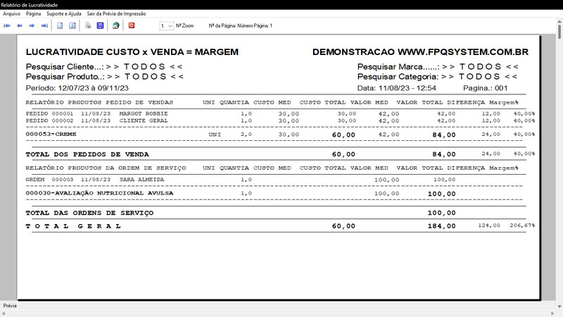 / Relatório dos Atendimentos / Relatório das Comissões / Vendas