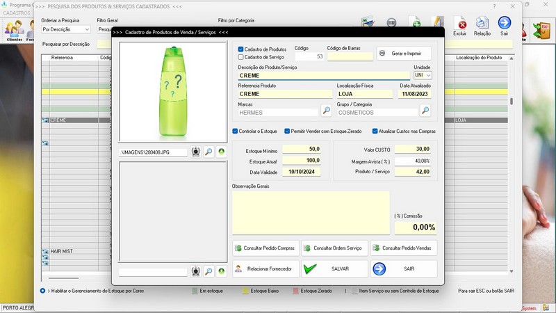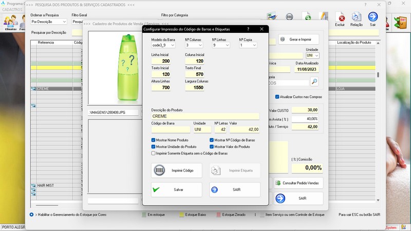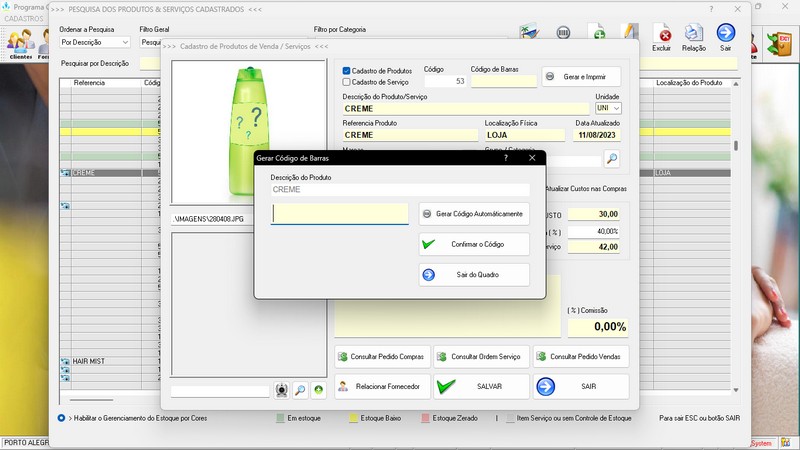 Balcão / Relatório de Vendas / Cadastro de Produtos / Foto nos Produtos