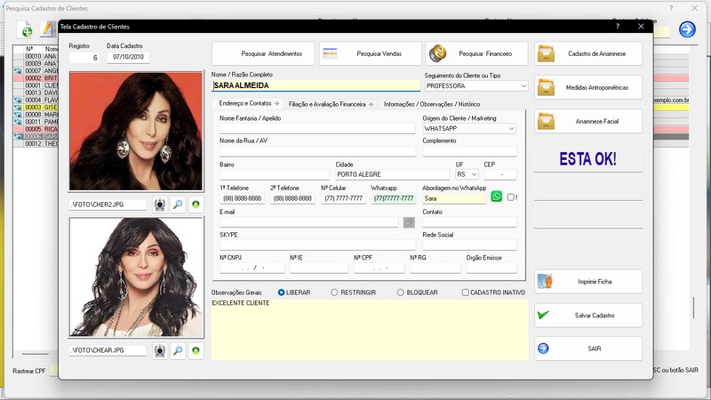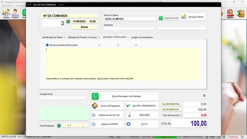 Clinica de Estética e SPA, Agendamento, Vendas e Financeiro v6.0 Plus WhatsApp Atendimento / Clientes /