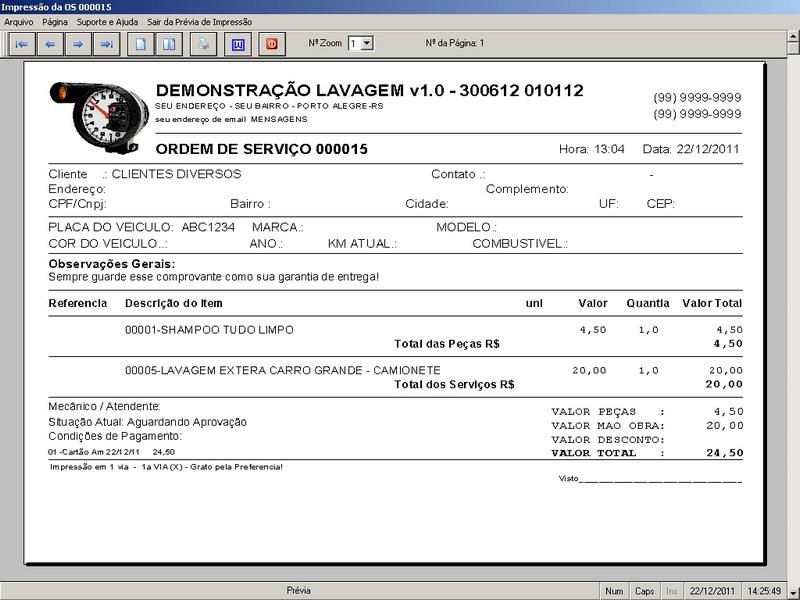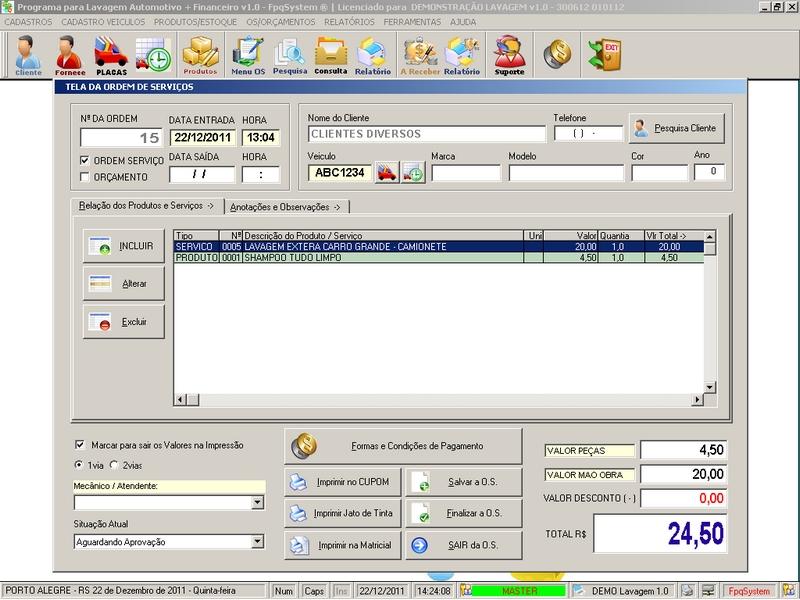para Lavação Automotiva com Ordem de Serviços v1.0
