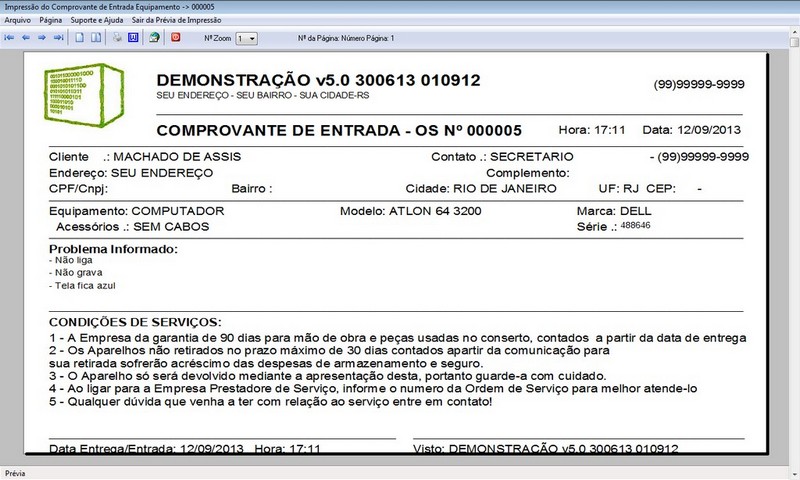 O Programa para Assistência Técnica v5.0, tem inúmeros tipos de cadastros, equipamentos, serviços, orçamentos e vários relatórios para você ganhar tempo, reduzindo erros e aumentando sua lucratividade. Nossa autoria, suporte online e entrega por e-mail em até 2 horas.