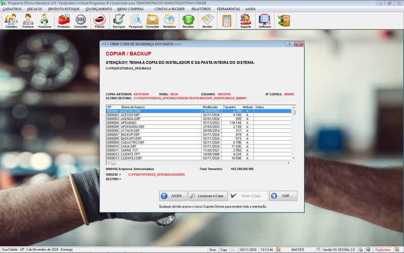 - Opção de Backup do Programa