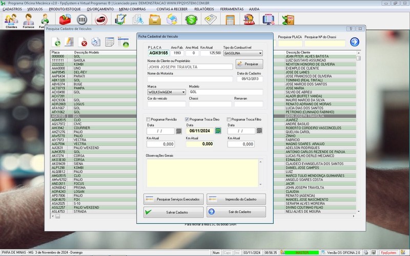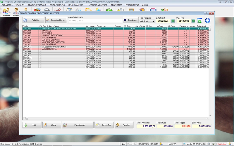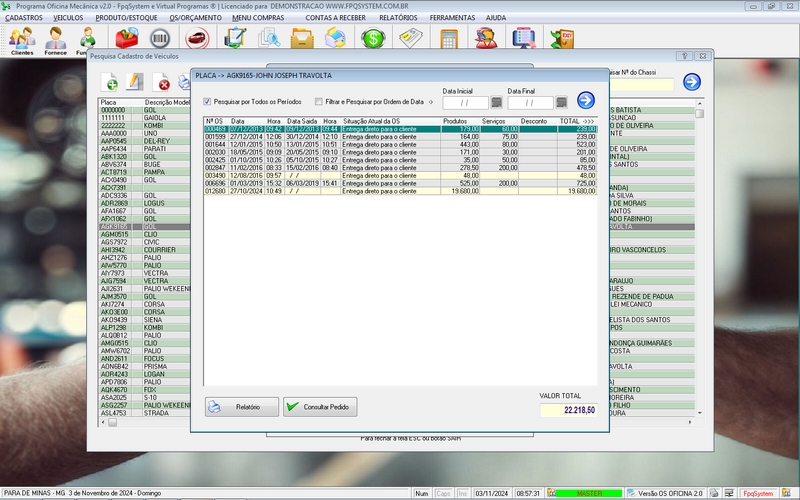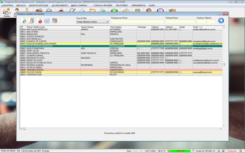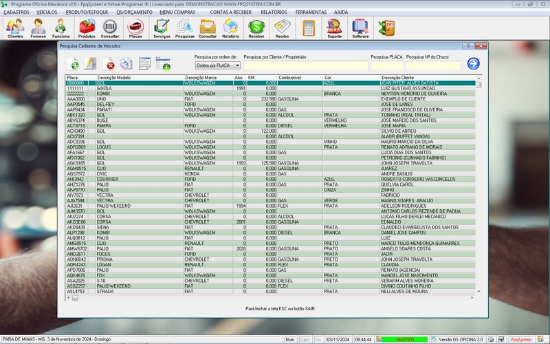 Ordem de Serviço / Orçamentos / Clientes / Fornecedores / Mecânicos /