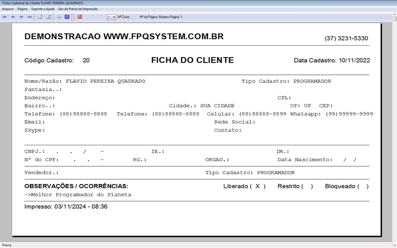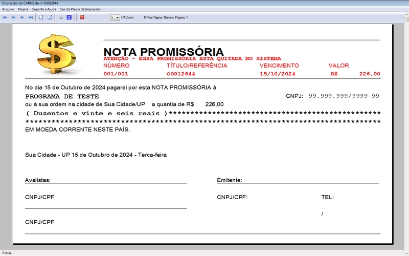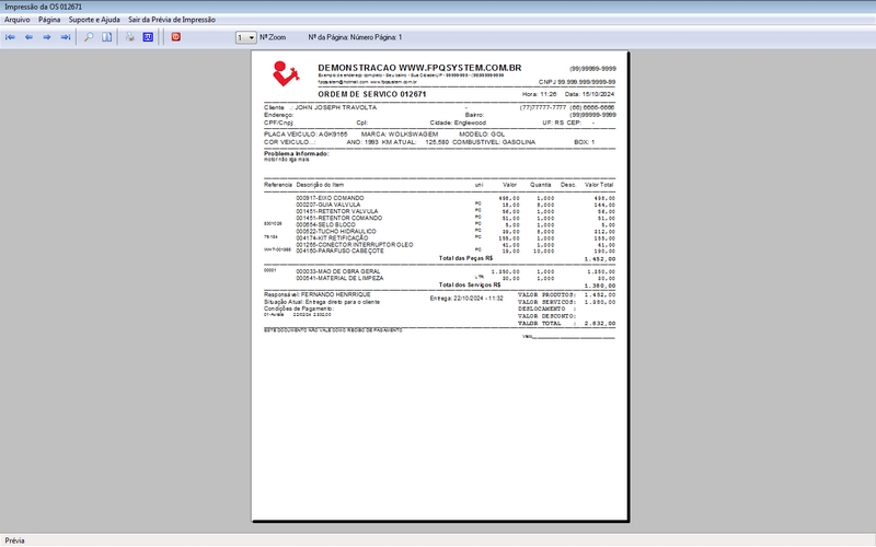 - Impressão da OS em JATO DE TINTA / LASER